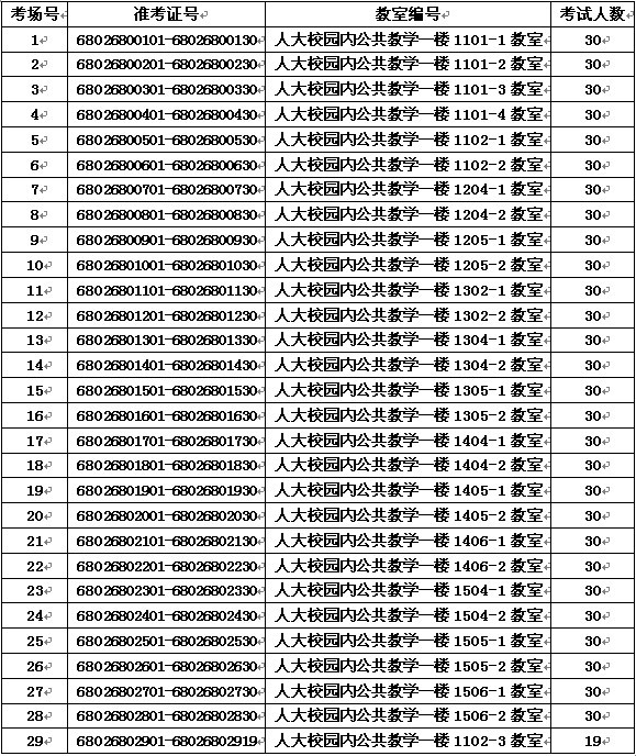 考試地點: 人大校園內(nèi)公共教學一樓