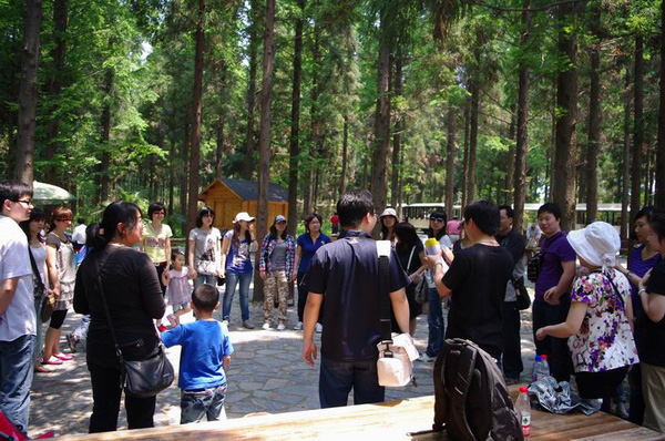 5月15日上午8:30我們懷著非常喜悅的心情踏上了前往東平森林公園的車程上,路上我們做了成語接龍、繞口令等游戲。