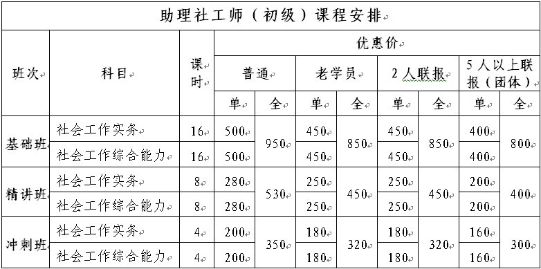 2. 平日、周末均可授課,依據(jù)社會工作者職業(yè)水平考試各科題量比例,有針對性的訓練,側重突破考點。