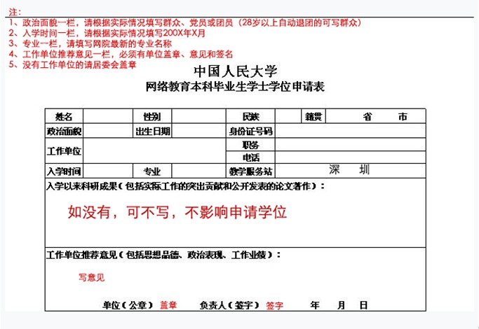 填表注意事項(xiàng):若報(bào)名時(shí)登記的身份證號碼為未升位號碼,請按照未升位的號碼填寫學(xué)位申請表