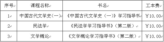本學(xué)期三門課程有學(xué)習(xí)指導(dǎo)書:《中國古代文學(xué)史(一)》、《民法學(xué)》、《文學(xué)概論》?! ?/p>