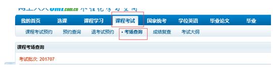 2、考場(chǎng)查詢方法:個(gè)性化學(xué)習(xí)空間—課程考試—考場(chǎng)查詢