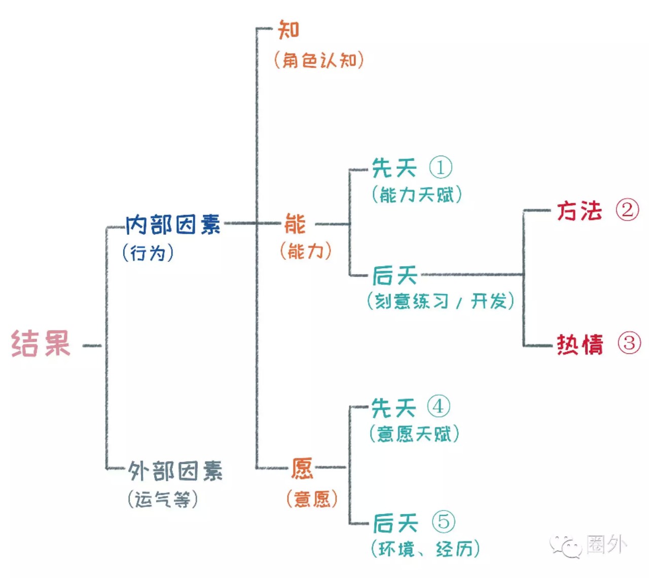 也就是說(shuō),能力取決于先天的能力天賦以及后天的刻意練習(xí)。而意愿,也取決于先天的意愿天賦以及后天的環(huán)境和經(jīng)歷。